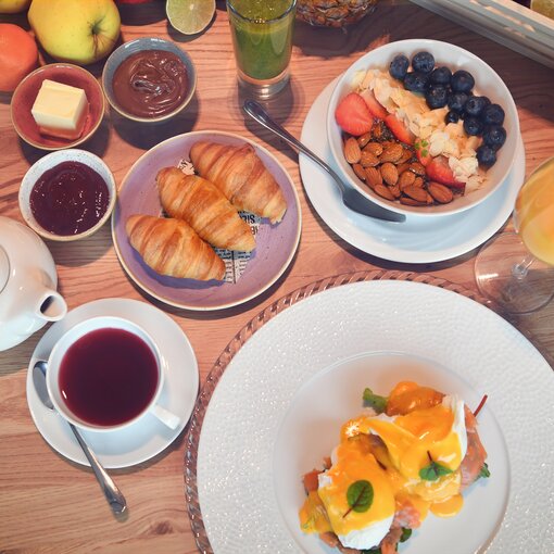 To start your day full of energy, we offer a diverse selection of tea as well as freshly prepared coffee specialties. Whenever possible, our products, ranging from crispy pastries to fruit juices and muesli, come from Austria. We maintain long-standing partnerships and close relationships with our local suppliers. In addition, we also offer lactose-free and gluten-free options to meet the individual needs of our guests.