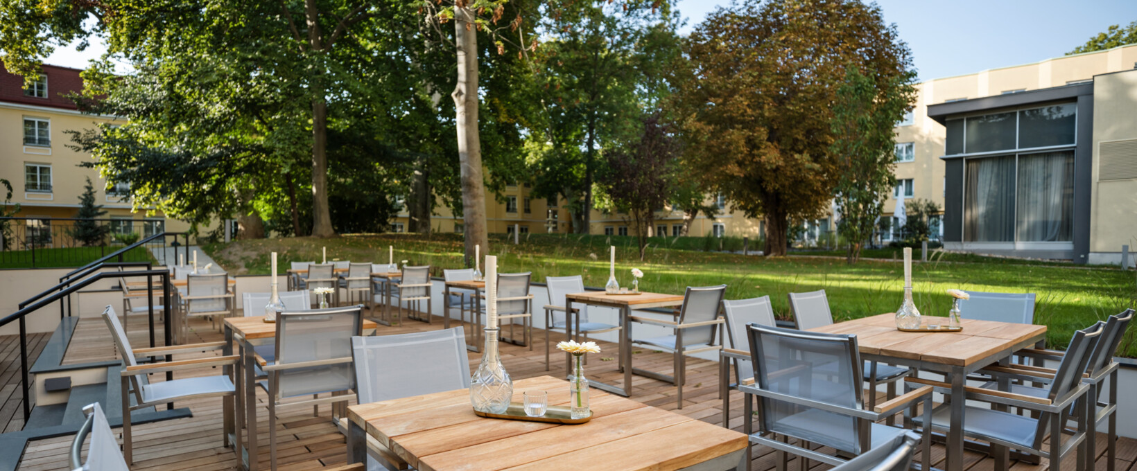 How about having a relaxed sit-down on the hotel terrace? Or rather: Hietzing's insider tip! In the quiet garden you can escape the hustle and bustle of the city. The glass of wine and the Sacher cake taste at least twice as good with chirping birds in the background while having a good conversation.